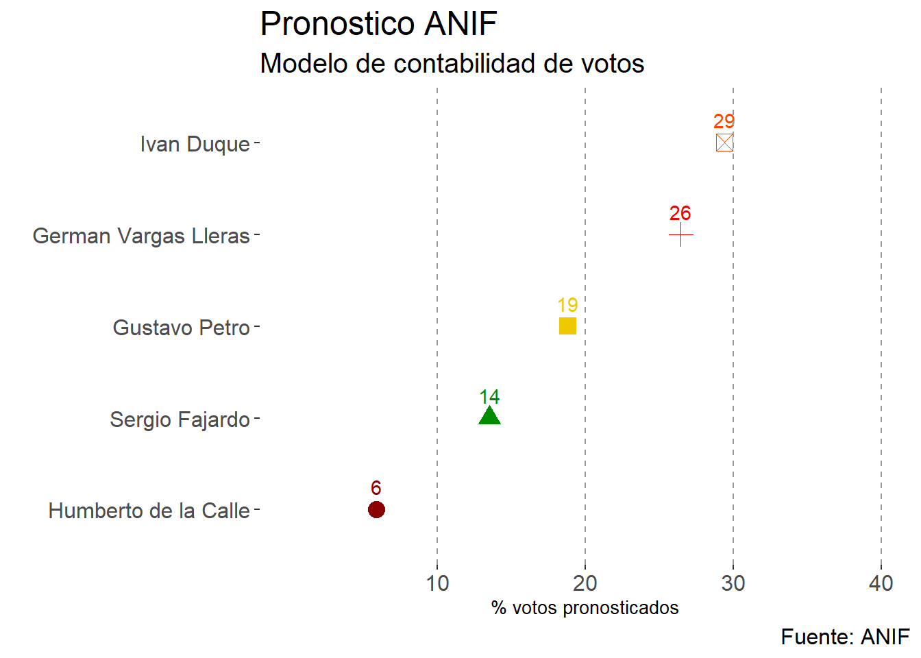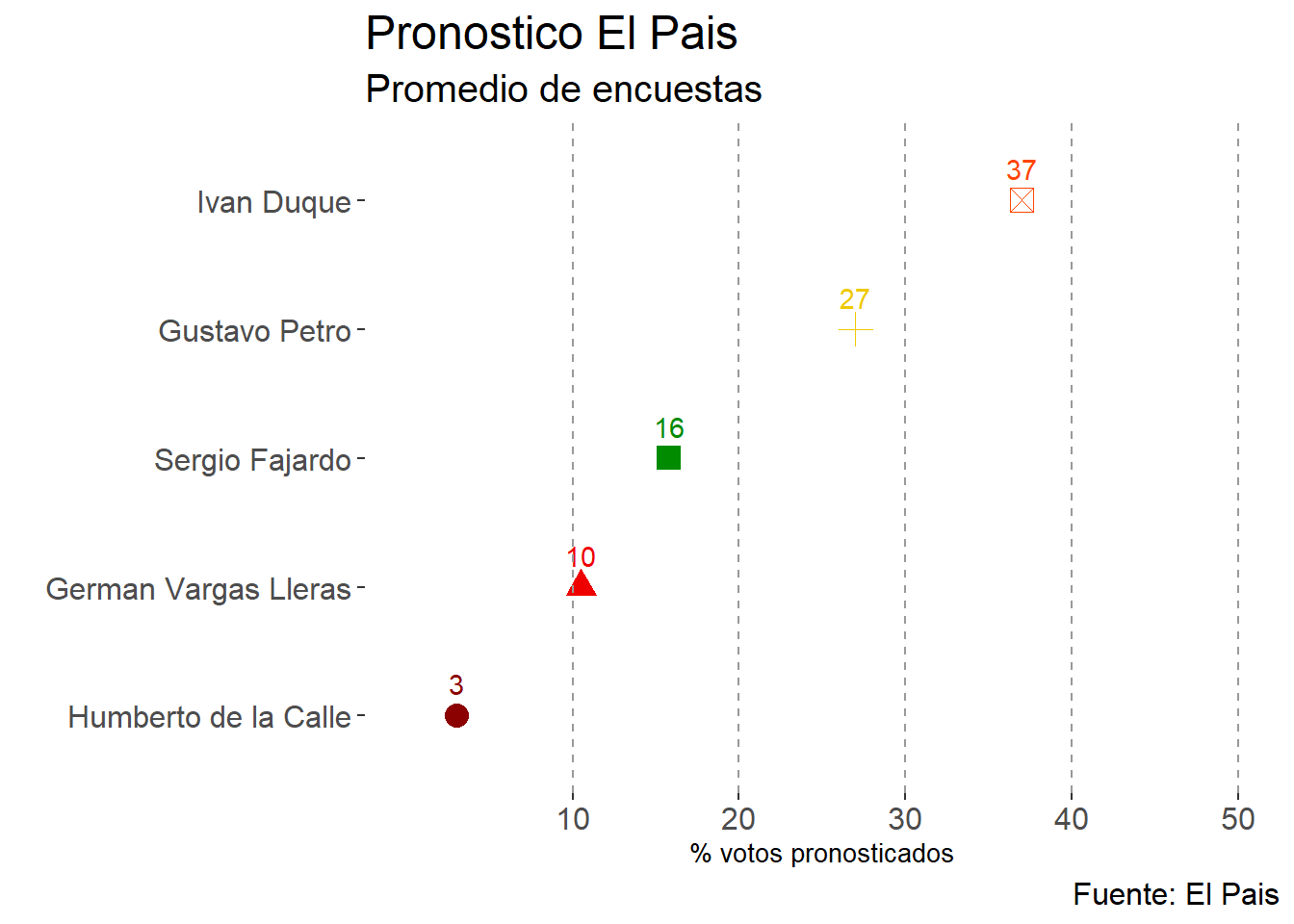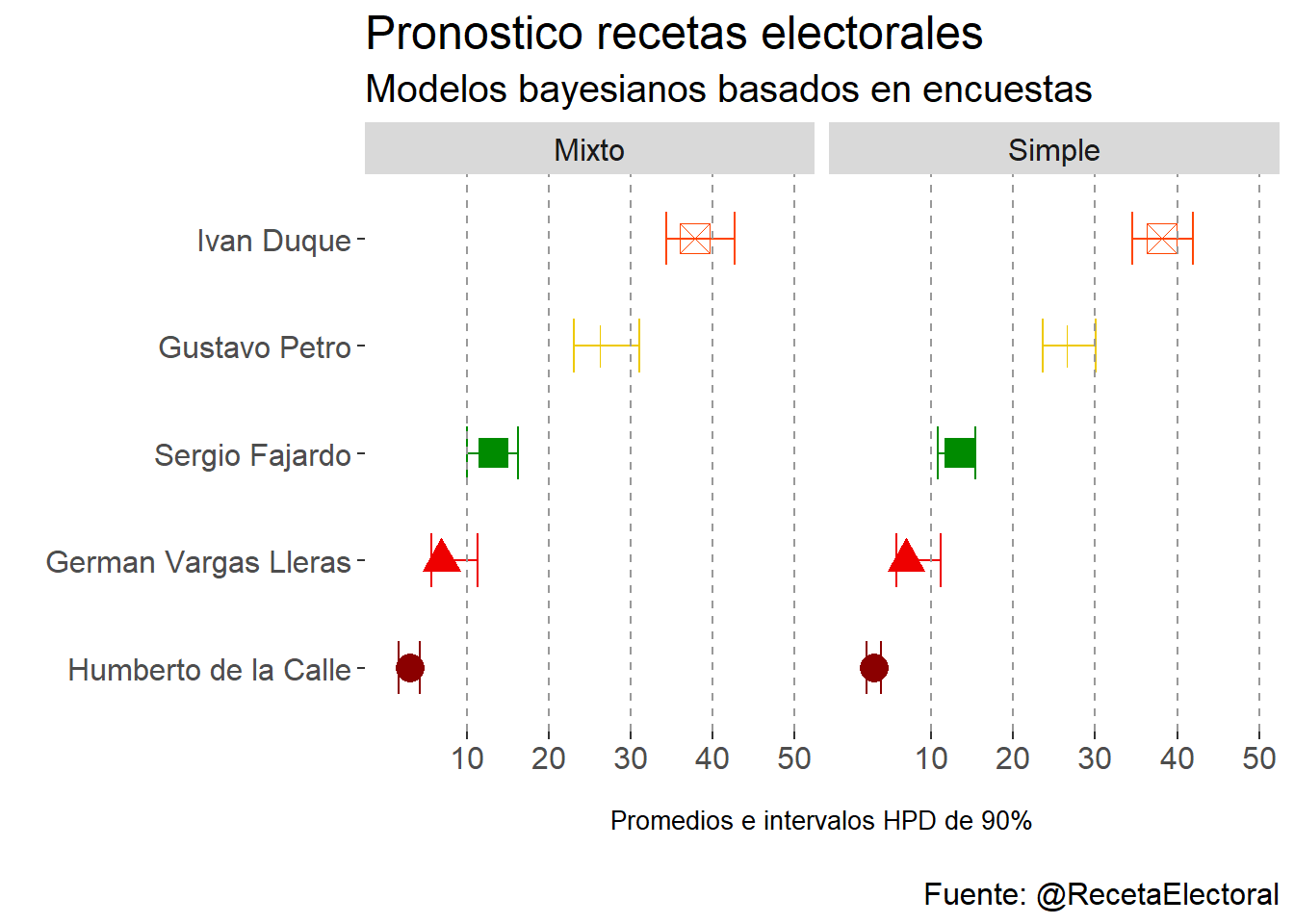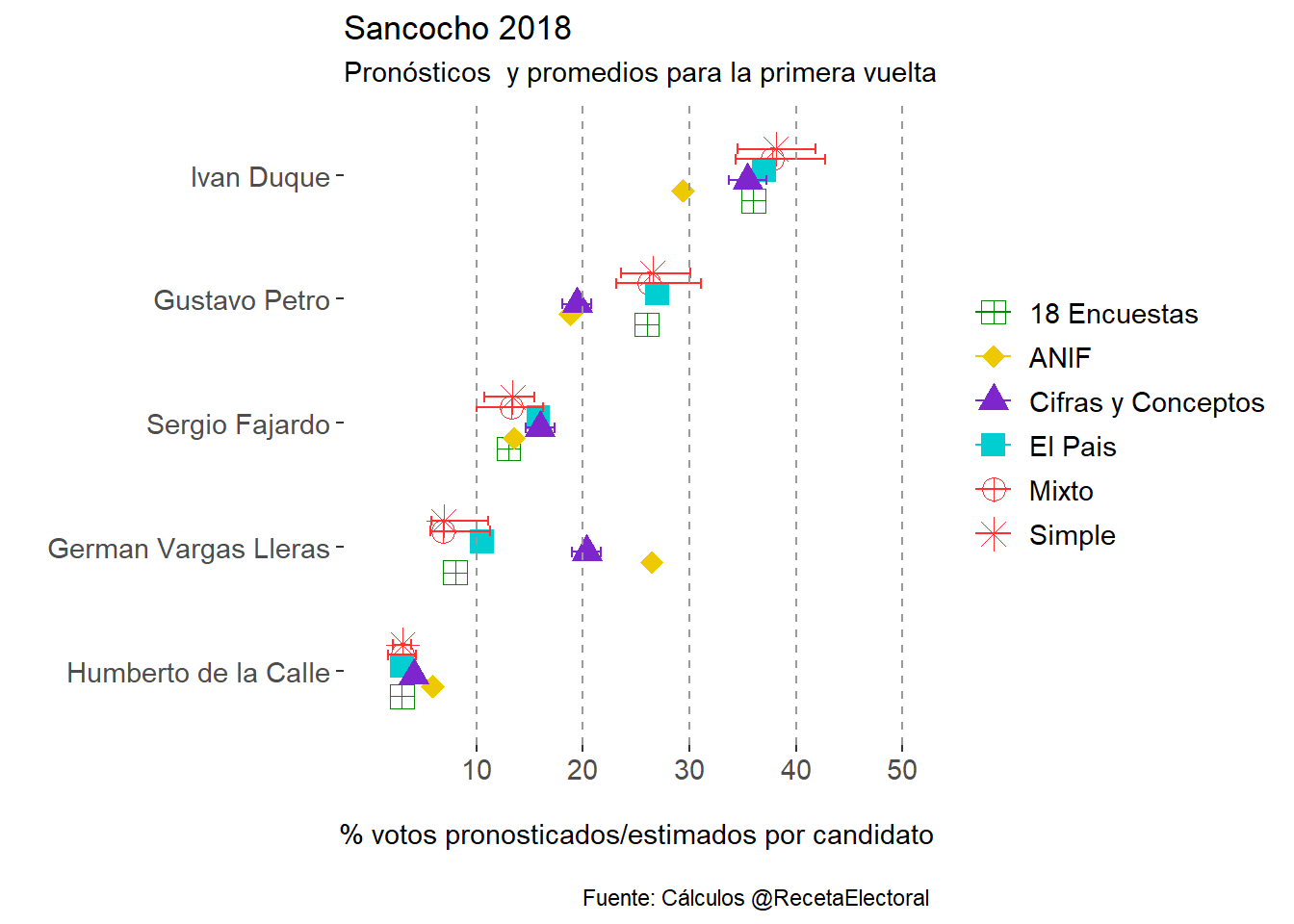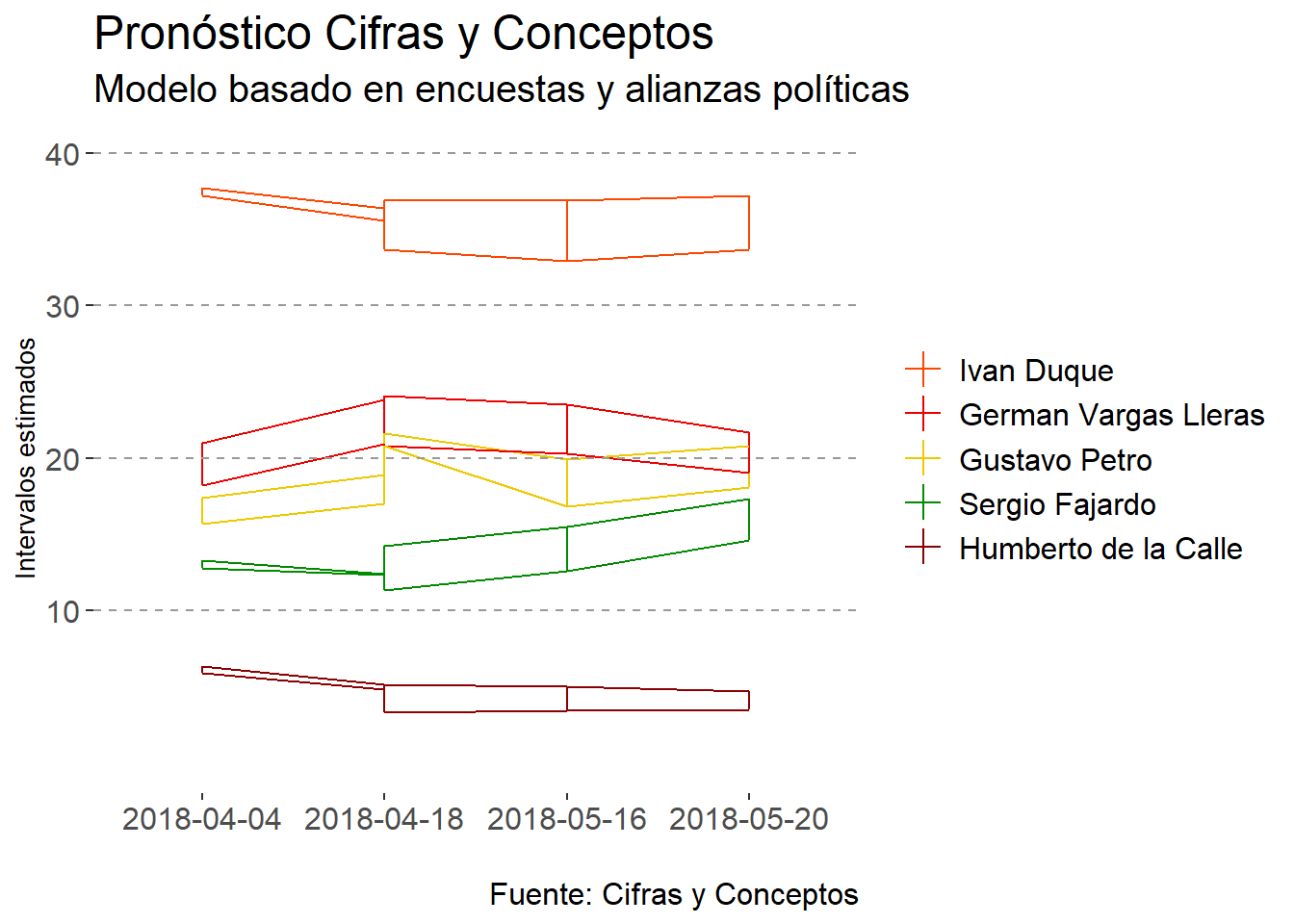 dplyr::mutate(candidato=factor(candidato,levels=c("Humberto de la Calle","German Vargas Lleras","Sergio Fajardo","Gustavo Petro","Ivan Duque")))
