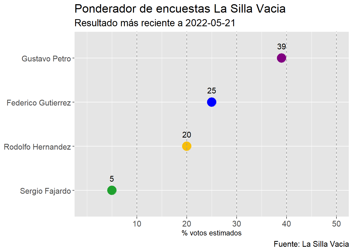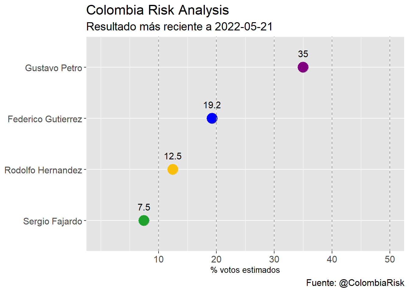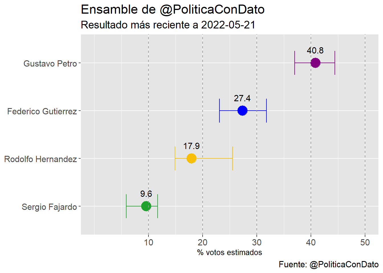 dplyr::mutate(nombres = factor(nombres, levels=c("Gustavo Petro","Federico Gutierrez","Rodolfo Hernandez","Sergio Fajardo","Ingrid Betancourt")),