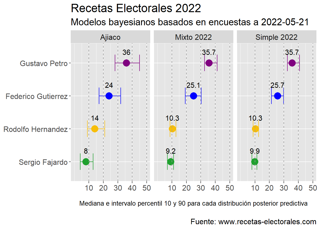 plato = factor(plato,levels = c("Resultado","Ajiaco","Mixto 2022","Simple 2022","@JorgeGalindo El Pais","La Silla Vacia","@PoliticaConDato","@ColombiaRisk","@calc_electoral","Encuestas"))) %>%