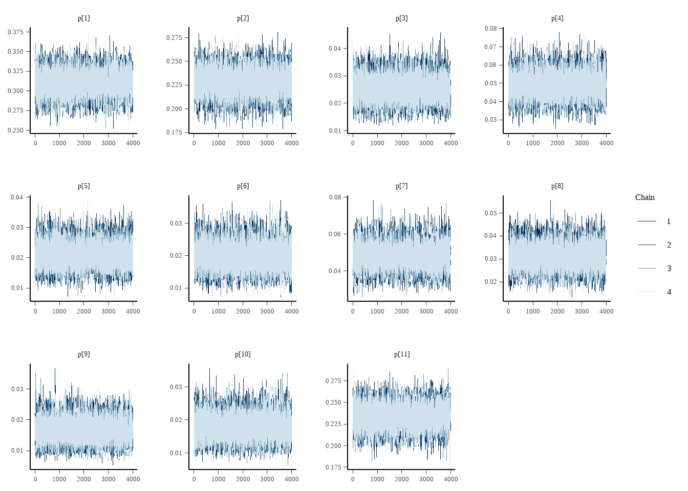 p[11] 0.23 1.0e-04 1.4e-02 1.4e-02 0.21 0.23 0.26 18052 12383 3060 1.0